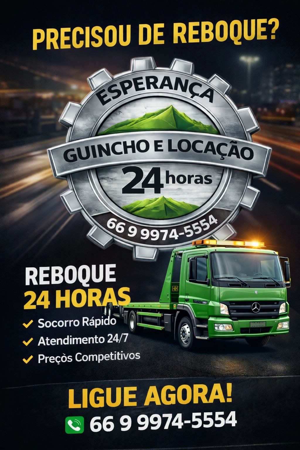 Na Esperança Guincho, nossa missão é proporcionar um serviço de guincho rápido e confiável. Atendemos Rondonópolis e região, garantindo que seu veículo esteja sempre seguro e bem cuidado.